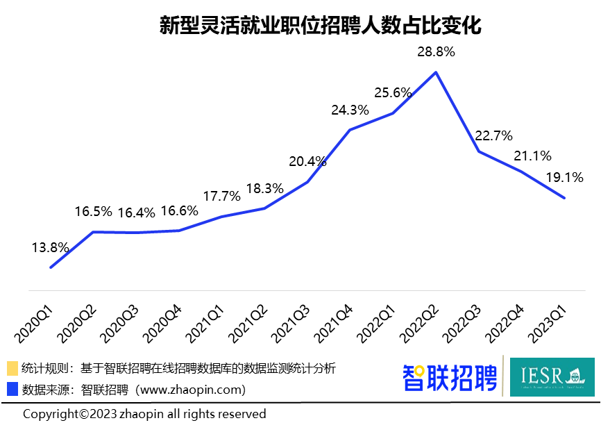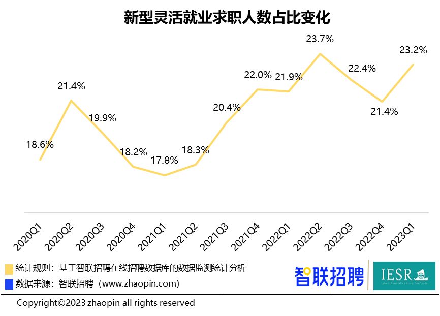近日,暨南大学经济与社会研究院和智联招聘联合发布《2023中国新型灵活就业报告》,对我国新型灵活就业最新发展趋势和供需主体特征进行了详细分析。报告认为新型灵活就业已经成为传统就业的重要补充,甚至在个别特定行业及职业已经占据主要地位。